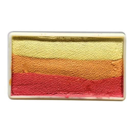 Simply use a flat face painting brush and water to get started. For flowing cheek art designs use a 1” flat brush to load all of the colours in the split cake or use smaller flat brushes to just pick up a few of the colours. Make sure to start with a slightly damp brush and add more water as needed by just dipping one corner of the brush lightly into your water. If you are new to 1 stroke face painting, the internet is filled with tons of amazing 1 stroke design ideas to inspire you.