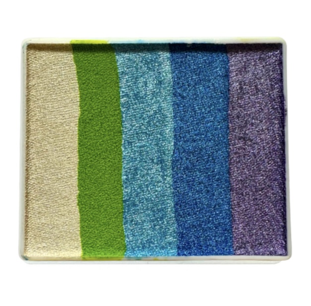 Funky Frog is a vibrant and shimmering one-stroke split cake by Diamond FX, featuring a stunning metallic palette of Metallic Violet, Metallic Blue, Metallic Baby Blue, Light Green, and Metallic White. This unique blend combines shimmering cool tones with fresh green and crisp white, perfect for creating playful frog designs, magical creatures, and nature-inspired face and body art with a radiant metallic finish.