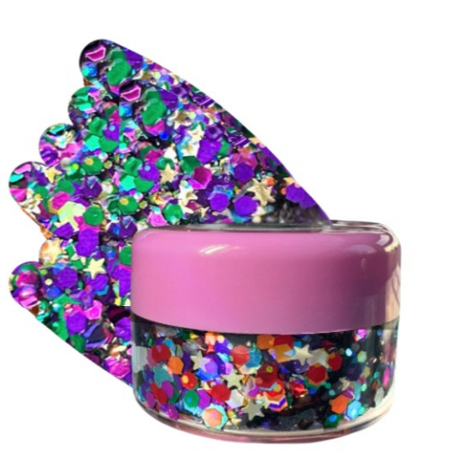 Disco Punch is a lively gel glitter blend of purple, green, gold, blue, and pink, capturing the spirit of celebration and festivity. Its smooth, non-sticky formula glides effortlessly onto the skin, perfect for carnival-inspired makeup, body art, and bold festival looks. Made with FDA and EU-approved, skin-safe cosmetic-grade ingredients, a little goes a long way — so your 20ml jar will keep the party sparkling all day and night.