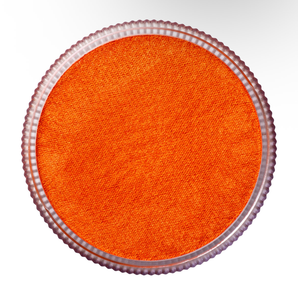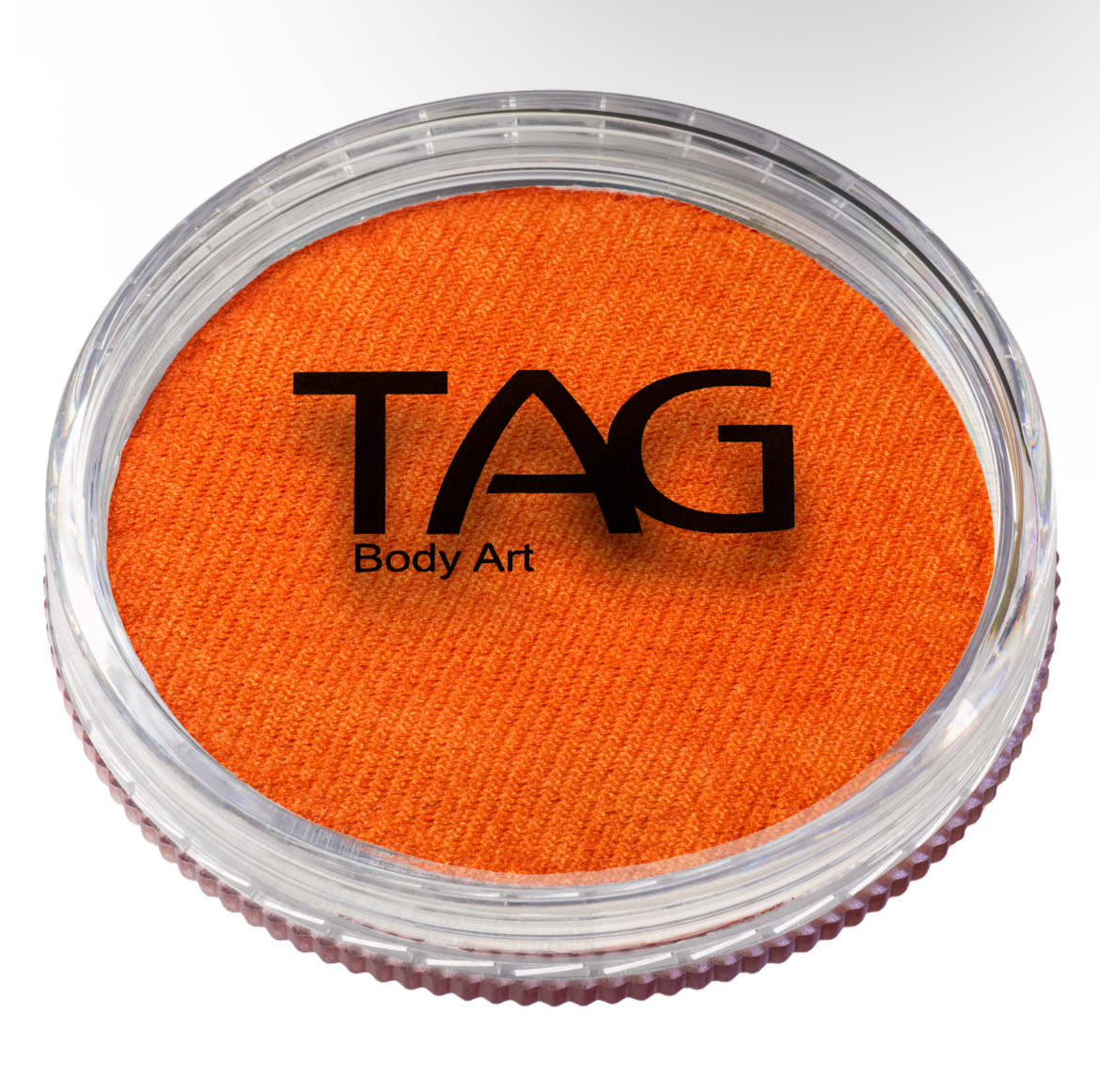 Light up your designs with the radiant Pearl Orange Face and Body Paint by TAG Body Art. This 32g cake features a bold, juicy orange shade with a luminous pearlescent finish—perfect for creating fiery accents, glowing sunsets, fall designs, and festive Halloween looks.